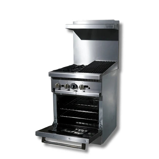 Gas Range 24"w/12" Charbroiler top with 2 Open Burners HZ-R24-12CB